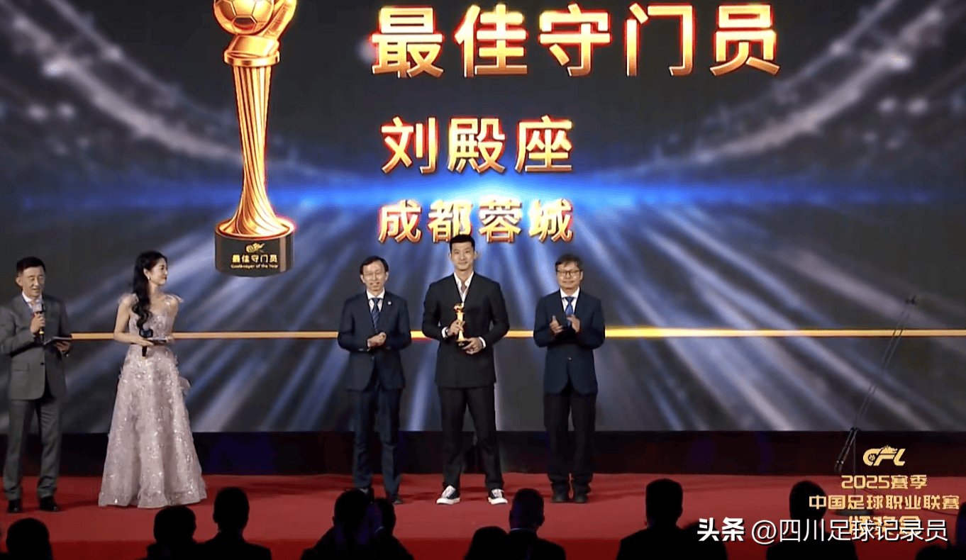 中超最佳门将是成都蓉城的门将刘殿座获得,他是本赛季丢球最少的门将,拿到这个荣誉实至名归